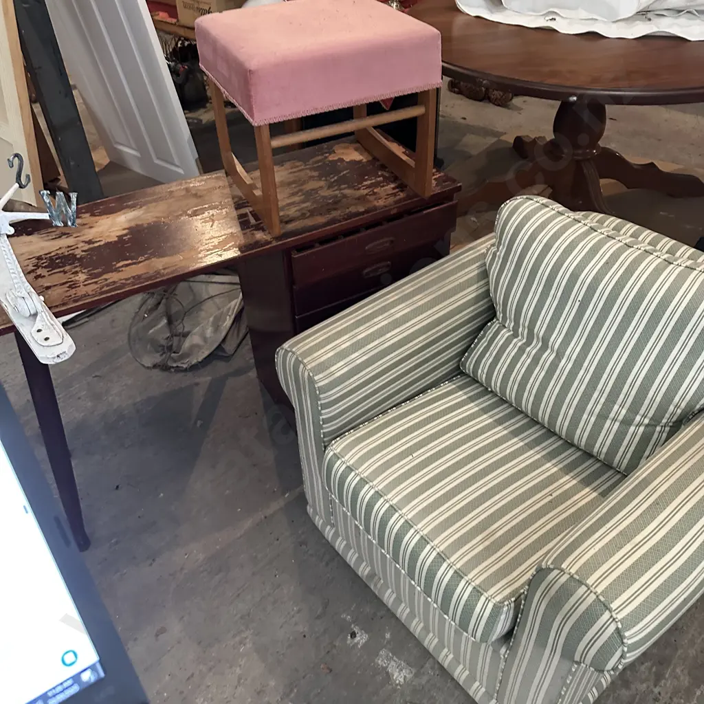 lounge chair, desk and stool