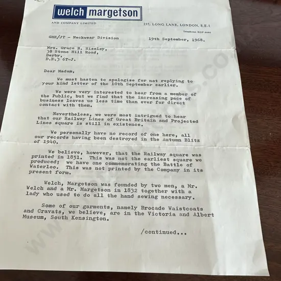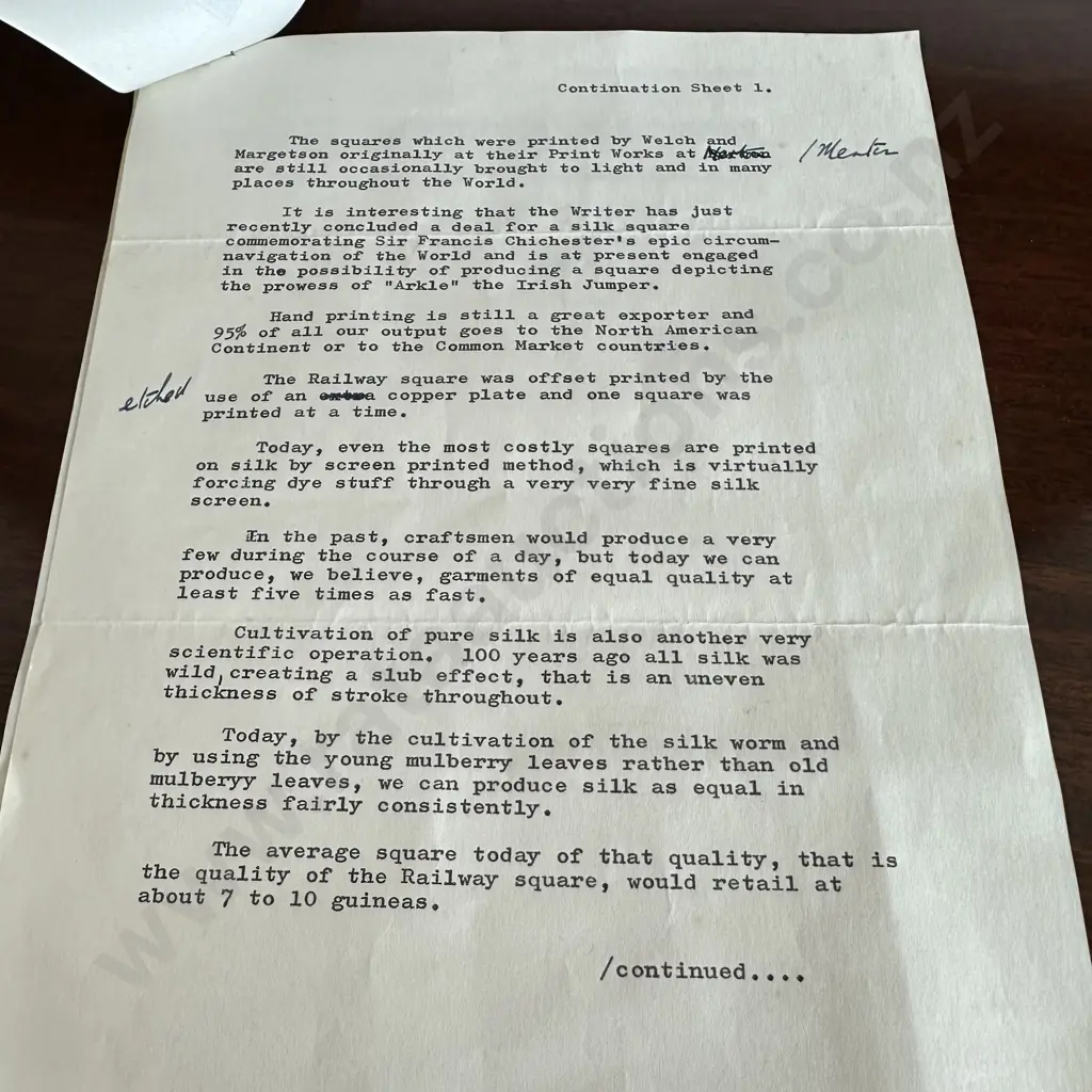 Ink printed Silk square. has good providence with a letter from the company in 1968 stating it is the only known example still in existence.