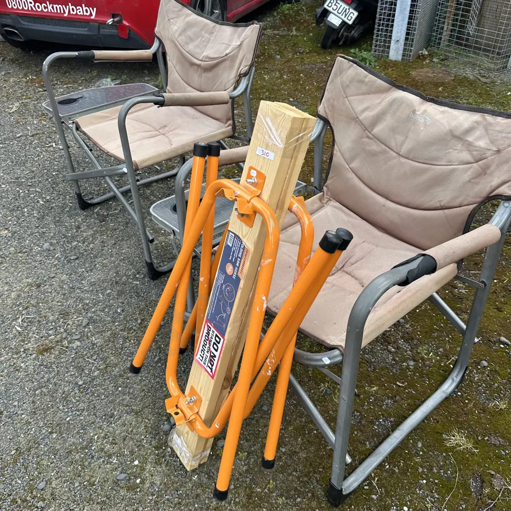 Pair saw horses and deck chairs